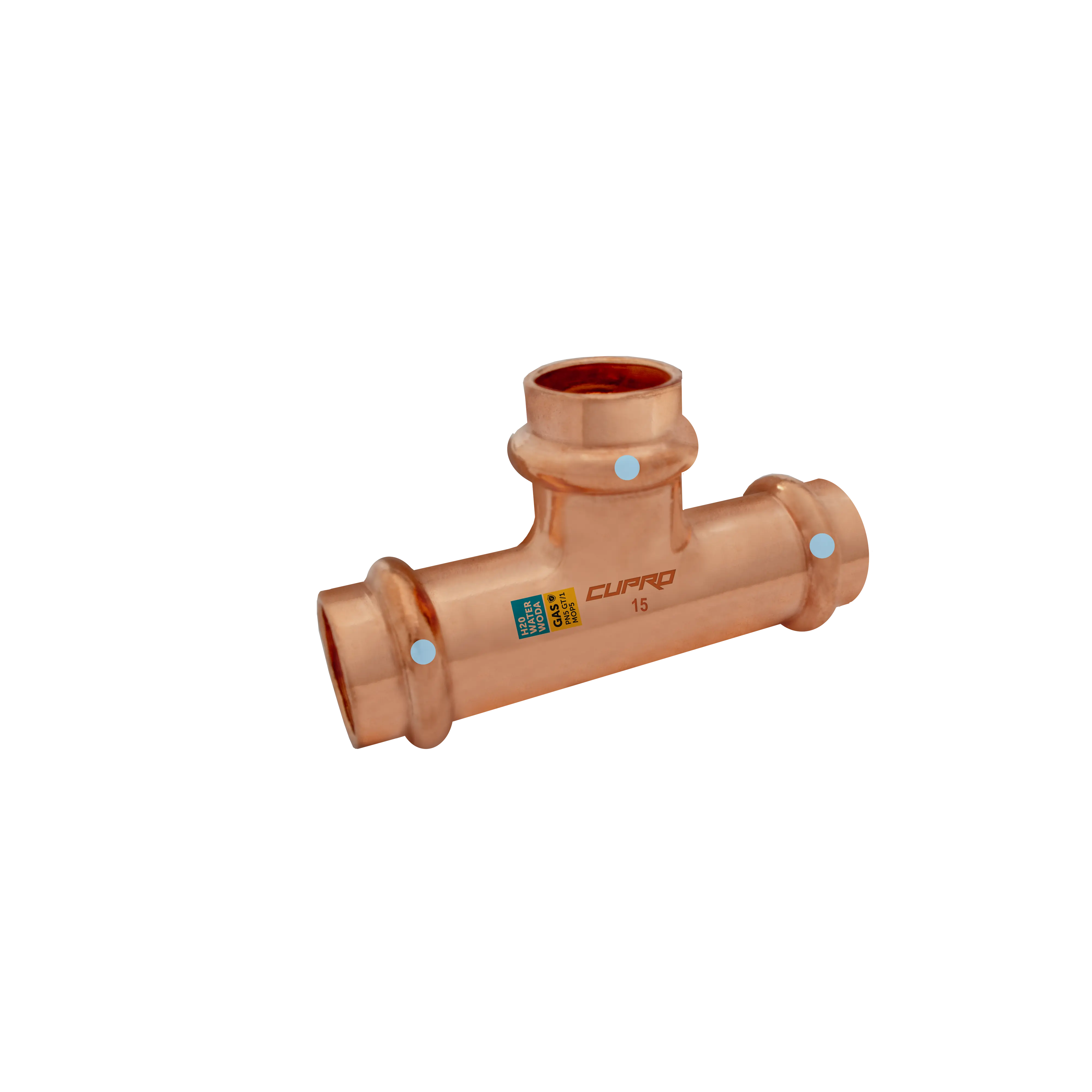 Trójnik miedziany zaciskowy 15 mm do instalacji wodnych