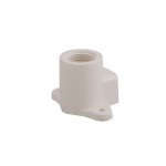 Kolanko składa się z korpusu CPVC z kielichem klejonym DN15 po jednej stronie (do wklejenia rury CPVC 1/2") oraz mosiężnej wkładki gwintowanej z gwintem wewnętrznym GW 1/2" po drugiej stronie (do nakręcenia przyłącza baterii z gwintem zewnętrznym GZ 1/2"). Zintegrowany uchwyt montażowy posiada otwór montażowy (typowo Ø 5–6 mm) – wystarczy wkręt lub kołek rozporowy, aby solidnie zamocować kolanko do ściany ceramicznej, gipsowo-kartonowej lub betonowej. Dzięki temu bateria, zawór lub grzejnik pozostają stabilne nawet przy intensywnym użytkowaniu.