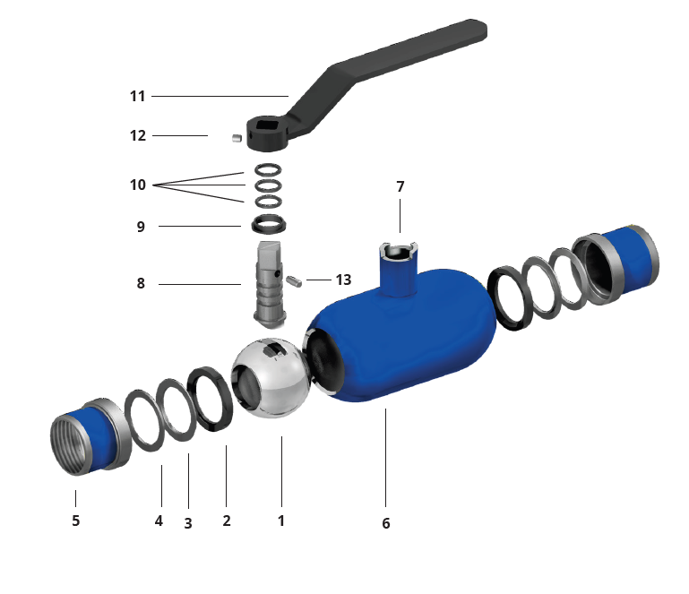 | Uszczelnienia kuli | PTFE + 20 % węgla (C) |